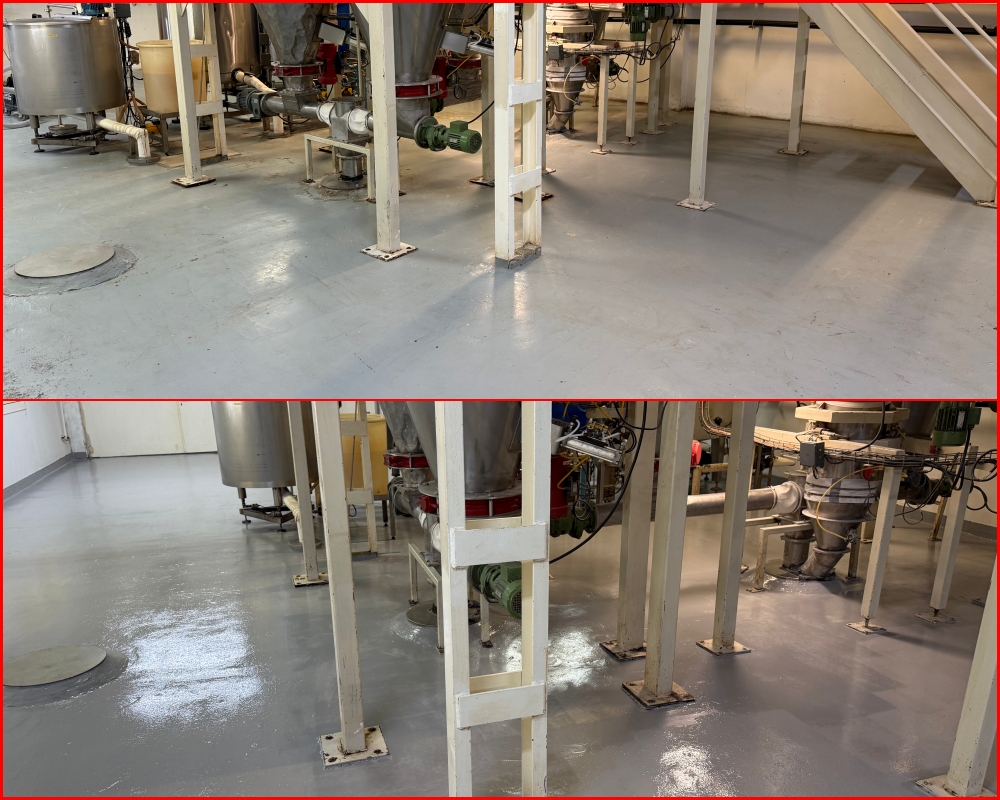 Renovación de suelo de resina epoxi suelo industrial | Antes y después
